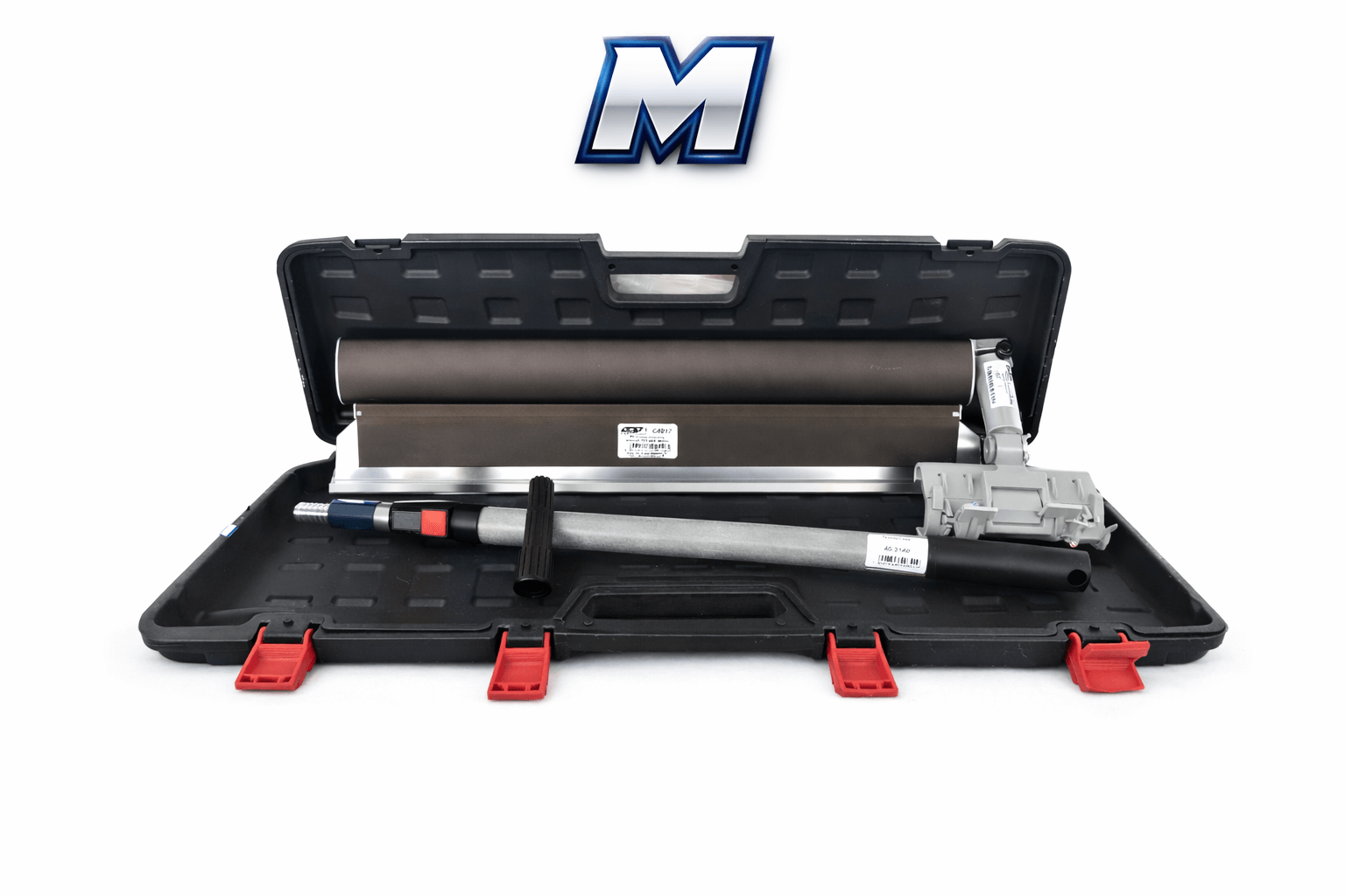 Az M szett tartalma:  1db 80cm, glettsimító, továbbá 1db univerzális adapter a simítóhoz, 1db 140cm teleszkóp és mindez egy strapabíró, műanyag kofferben. A simítók 0,3mm pengével vannak ellátva és alumíniumból vannak!